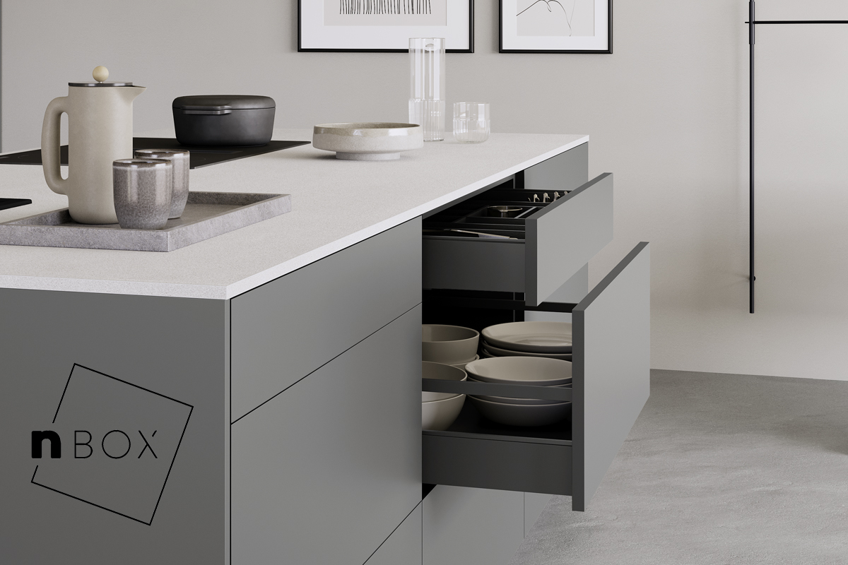 Voor persoonlijke wensen en de hoogste eisen: Ontdek met onze innovatieve nBOX de nieuwe standaard voor ons lade- en uittreksysteem. Geef jouw keuken een unieke uitstraling met premium design, maximaal comfort, moderne technologie en ontwerpmogelijkheden op topniveau.
