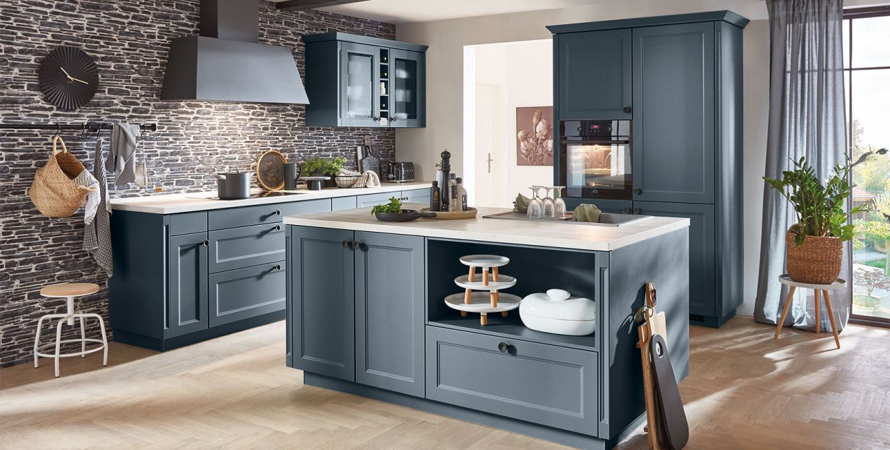 • Zo ziet een eigentijdse landelijke stijl eruit: de karakteristieke paneelfronten werden heruitgevonden en zijn nu uiterst gestroomlijnd. Ze passen perfect bij moderne elementen in industriële stijl, die coole accenten zetten. Gelakte oppervlakken in donkere zwart- en antraciettinten en roestvrijstalen handgrepen geven uw keuken een zakelijk-technische uitstraling en vormen een spannend contrast met accessoires van natuurlijke materialen.