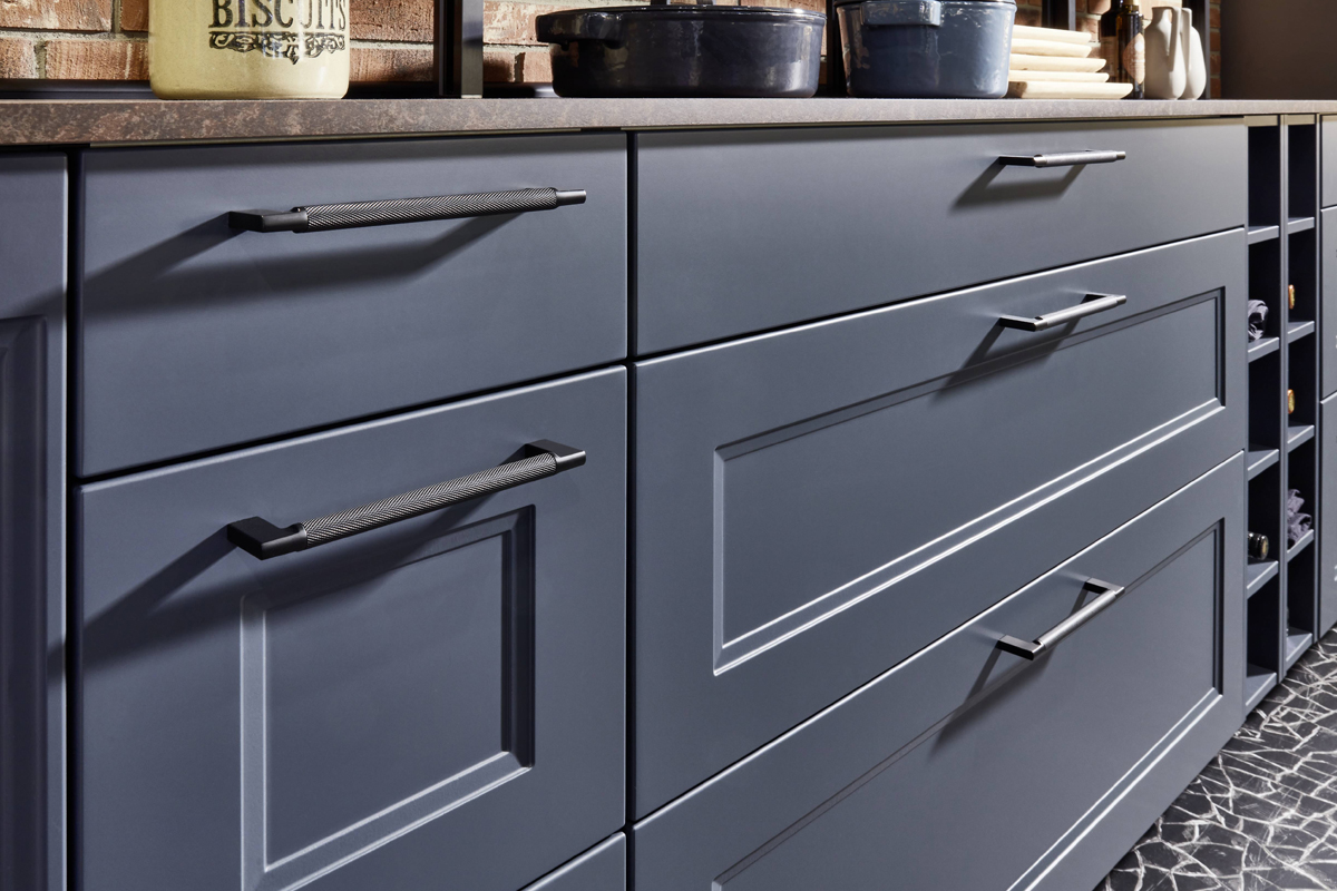 Zo ziet een eigentijdse landelijke stijl eruit: de karakteristieke paneelfronten werden heruitgevonden en zijn nu uiterst gestroomlijnd. Ze passen perfect bij moderne elementen in industriële stijl, die coole accenten zetten. Gelakte oppervlakken in donkere zwart- en antraciettinten en roestvrijstalen handgrepen geven uw keuken een zakelijk-technische uitstraling en vormen een spannend contrast met accessoires van natuurlijke materialen.