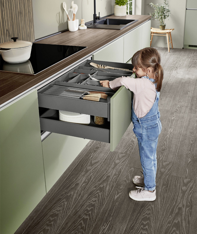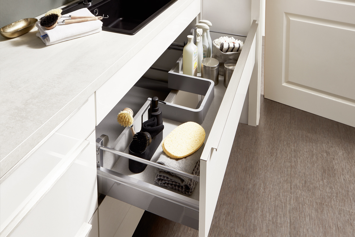 Of het nu gaat om individueel in te delen inzetelementen voor ladebakken, milieuvriendelijke afvalscheidingssystemen of ruimtebesparende hoekoplossingen: met ons kunt u alle kanten op. Onze keukenadviseurs geven graag antwoord op uw vragen.